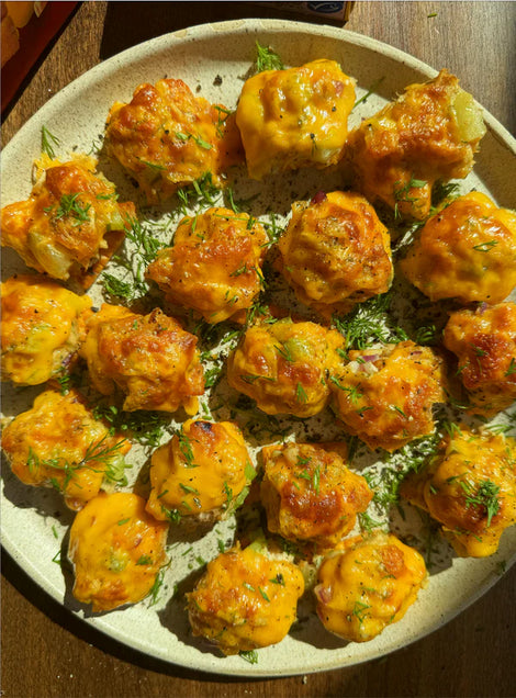 These Cheez-It x Fishwife Tuna Melt Bites are the perfect bite-sized snack! Topped with Fishwife Albacore Tuna, cheddar cheese, fresh dill, and served on Extra Big Cheez-It crackers, they’re a fun and flavorful twist on a classic tuna melt.
