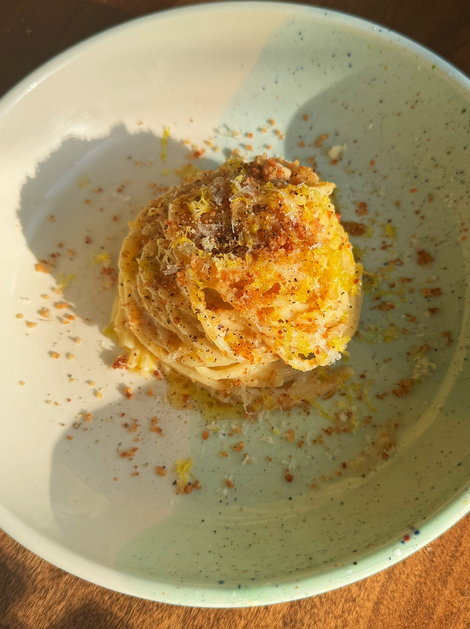 - Twirl into bowls and top with breadcrumbs, parm, lemon zest, and olive oil. Serve immediately