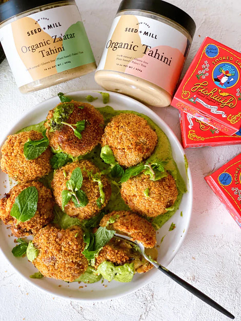 There is so much we love about this dish, made with smoked tinned salmon from our friends at Seed + Mill! The green tahini sauce is ‘lick the plate’ worthy and comes together in under a minute’s prep! You can make the sauce in advance and keep it in the fridge for up to three days. We made these salmon cakes with a couple of pantry staples and our Friday night leftovers……always love a double duty dish!