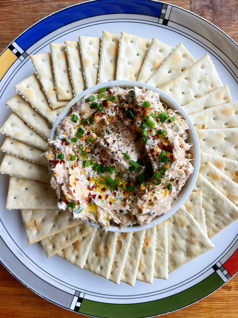Smoked Salmon and Chive Dip – A creamy and savory dip made with Fishwife Smoked Salmon, chives, capers, and lemon zest. Perfect for serving with crackers or crudités!