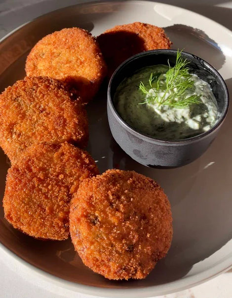 - Dip the croquets into the lemon herb sauce and enjoy!
