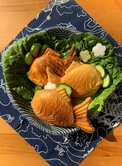 - To assemble: With a knife, cut a slit between the two sides of the taiyaki and spread a few teaspoons of filling inside, then add cucumber slices. Enjoy!