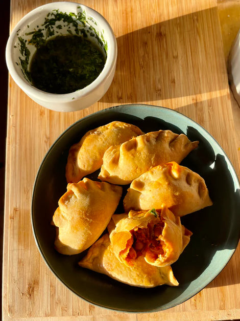 Elevate your empanada game with these Spanish-style Salmon Saffron Empanadas, filled with smoky paprika, Fishwife smoked salmon, and savory peppers. A perfect snack or appetizer, complemented by a zesty cilantro sauce.