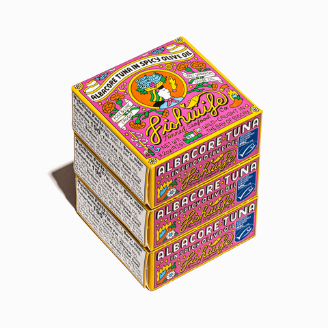 - • 4 tins of Spicy Albacore Tuna in Spicy Olive Oil
