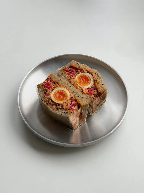 Enjoy a flavorful Spicy Tuna Sando made with Fishwife Albacore Tuna in Spicy Olive Oil, mayo, honey, pickled onions, and ginger, served on soft milk bread. Perfectly balanced with sweet, tangy, and spicy flavors!