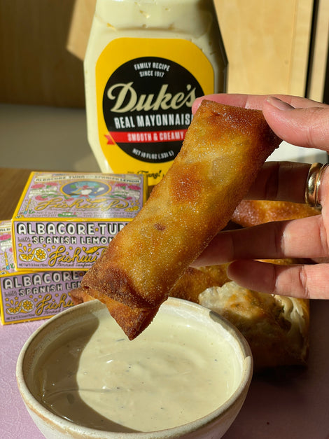 Just like the classic tuna melt (possibly better) but lightly fried in egg roll wrappers until perfectly golden and served with a zesty, pickle-y dipping sauce. The perfect lunch, mid-day snack, late night treat, you name it!