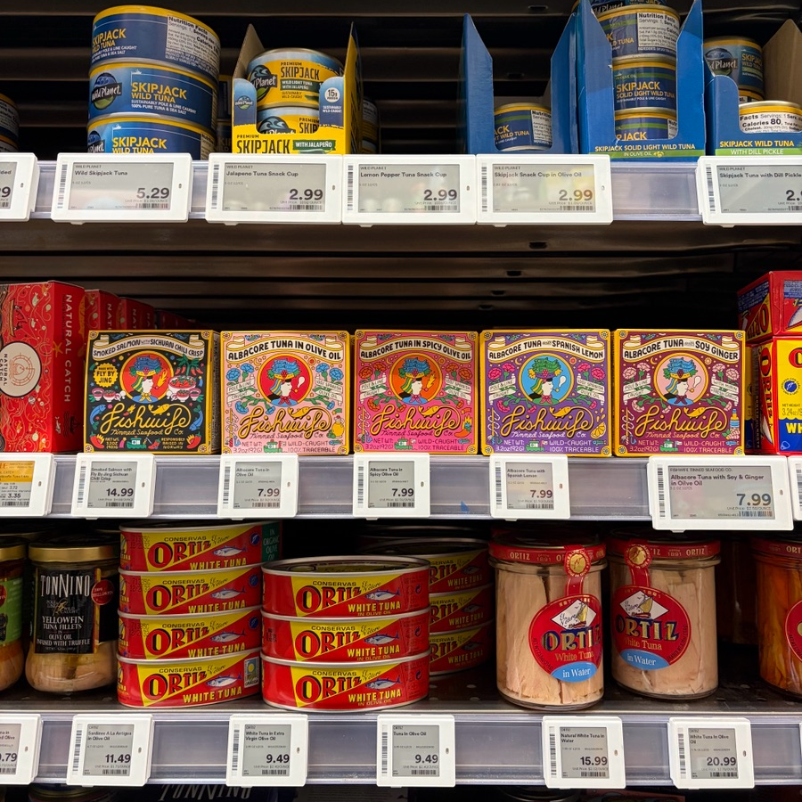 Sometimes you'll spot us near the fresh fish counter — don't let that fool you. We're fully shelf-stable and ready whenever you are.