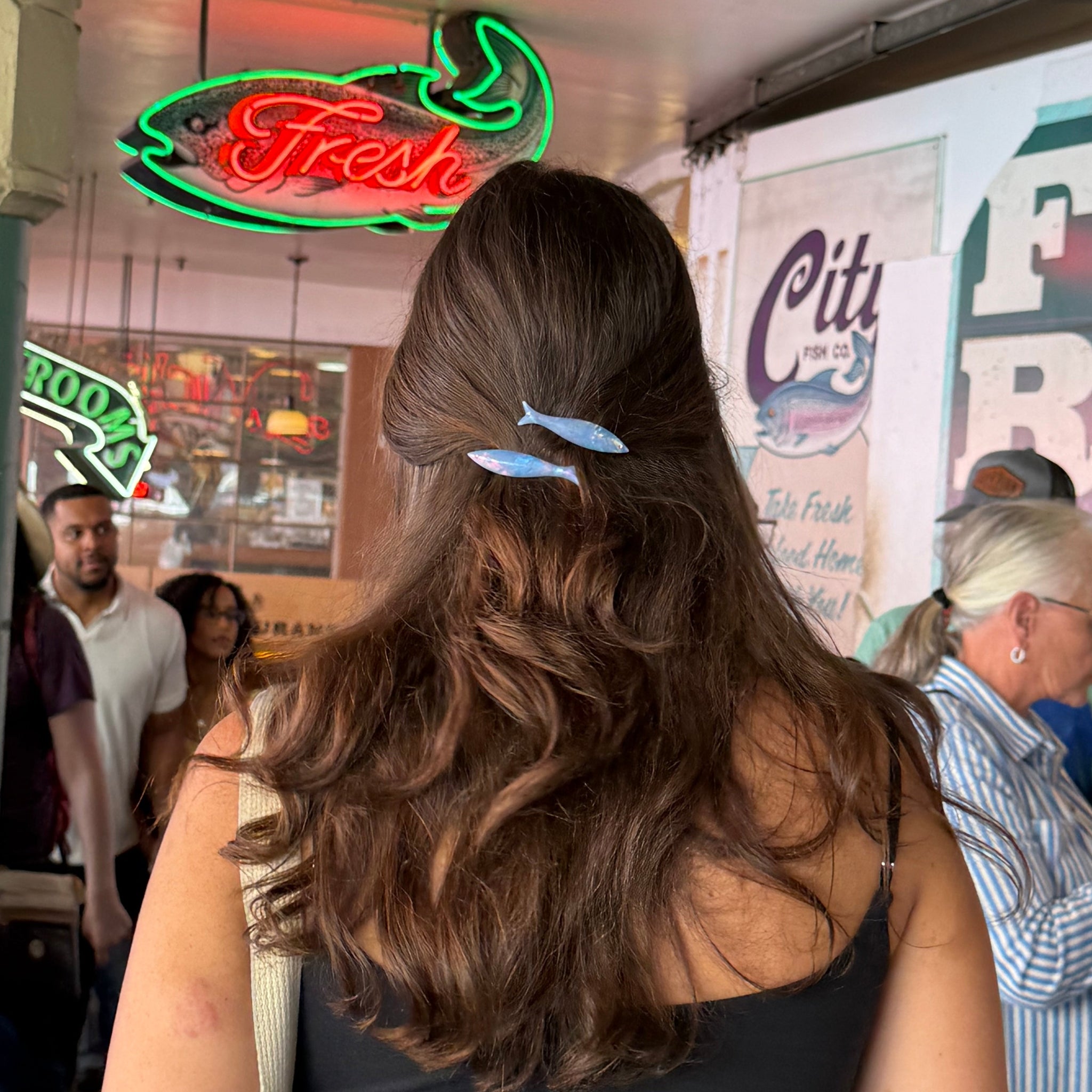 Add a splash of sea-inspired charm to your style with the Fishwife x Chunks Sardine Dream Hair Clips. This limited-edition set features four opalescent alligator clips that shimmer like sunlit waves, neatly nestled in a sleek, cobranded slide tin. Perfect for keeping your locks in place—whether you’re seaside or city-bound.